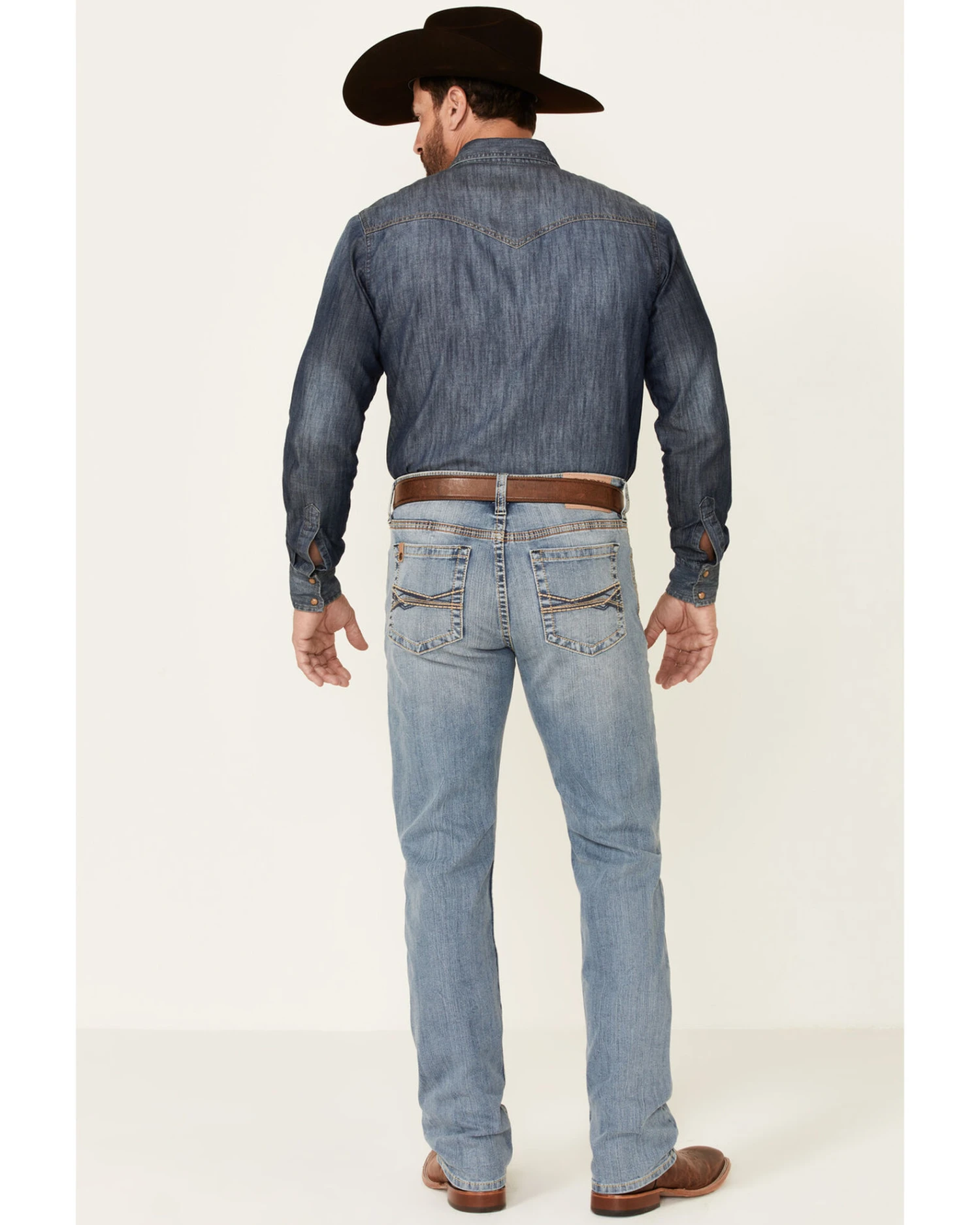 - Criss cross stitching on back pockets